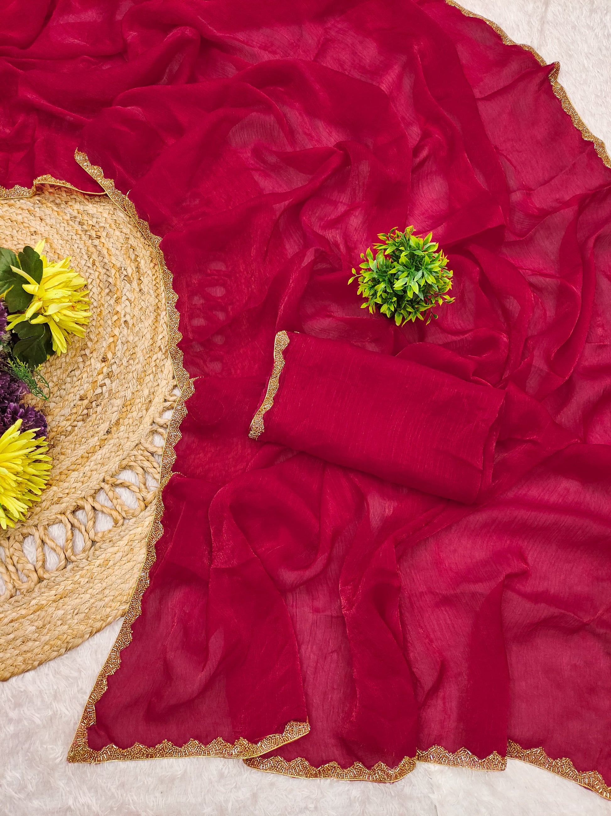 Saree: Pre pleated for the hip side.